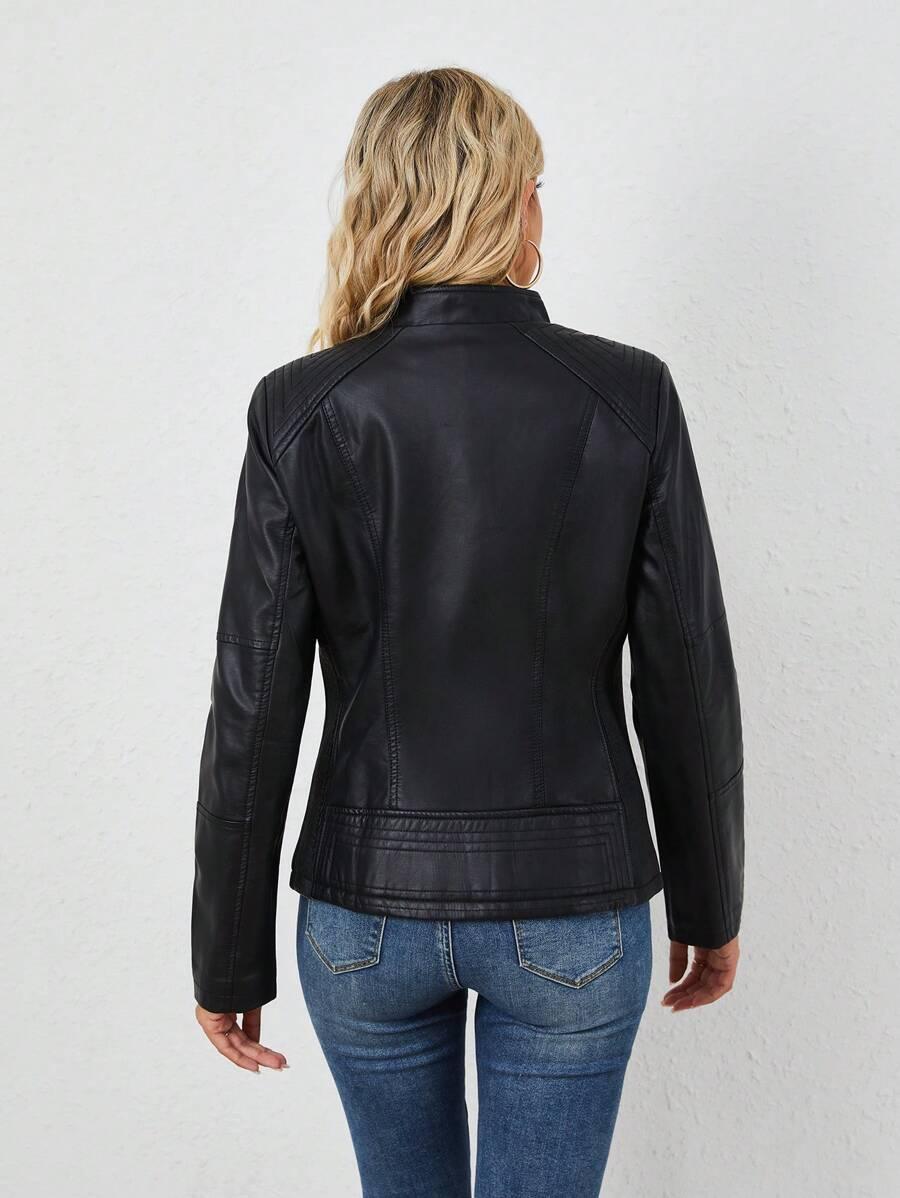 Bikerjacke aus Kunstleder mit asymmetrischem Reißverschluss und schickem Design