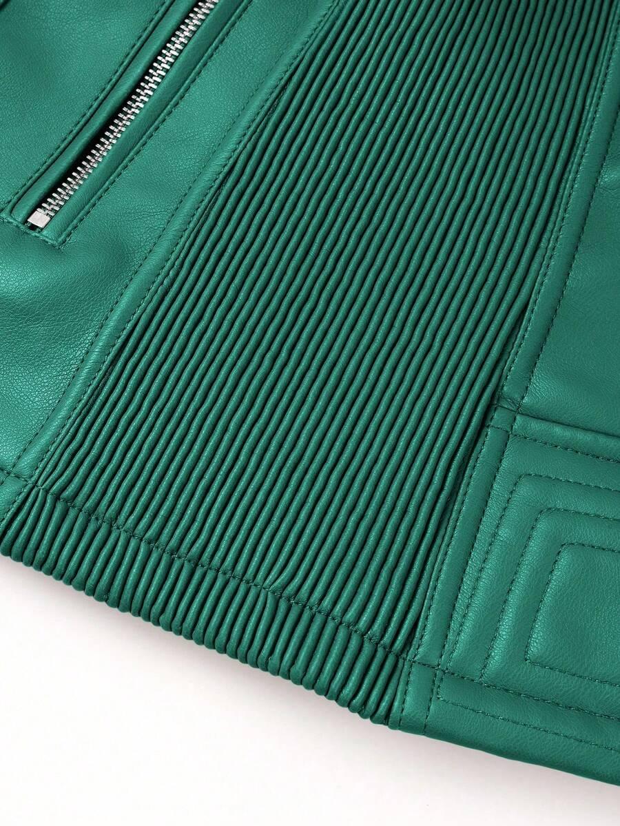Zeitlose Eleganz und dezenter Luxus zeichnen diese Bikerjacke aus Kunstleder aus. Ein asymmetrischer Reißverschluss und Colorblock-Einsätze verleihen eine schicke, minimalistische Silhouette mit modernem Touch. Der Trichterhals verleiht der Jacke eine raffinierte Struktur, während der offene Saum ein dezentes, urbanes Finish bietet. Taschen sind praktische Details für den Alltag. Dieses Modell verkörpert den Old-Money-Stil und wertet lässige Outfits mit ruhiger, raffinierter Präsenz im minimalistischen Stil auf.